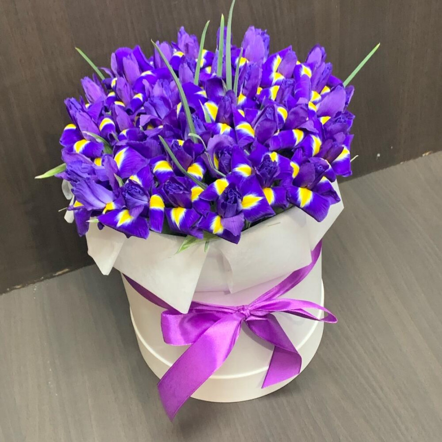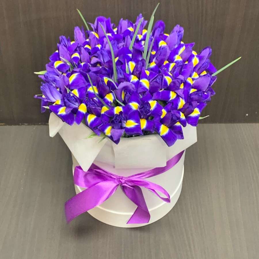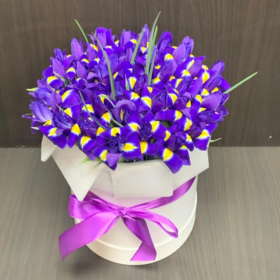51 фиолетовый ирис в шляпной коробке в Ханты-Мансийске