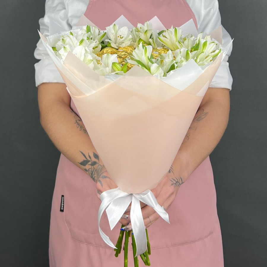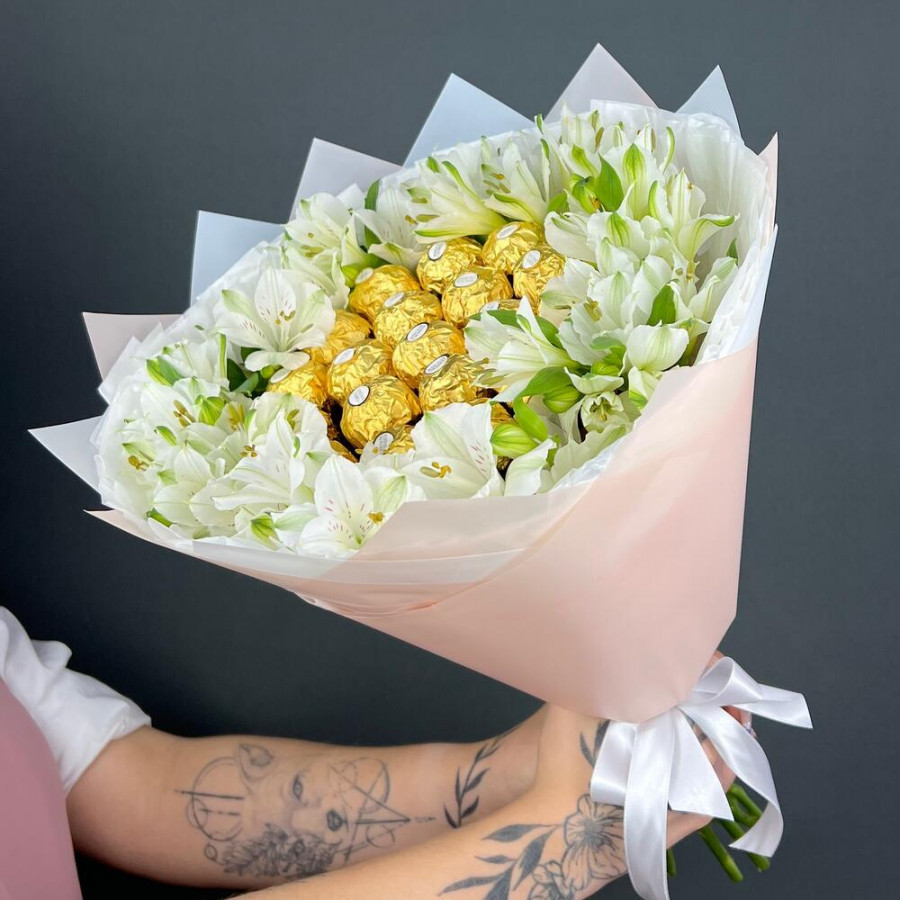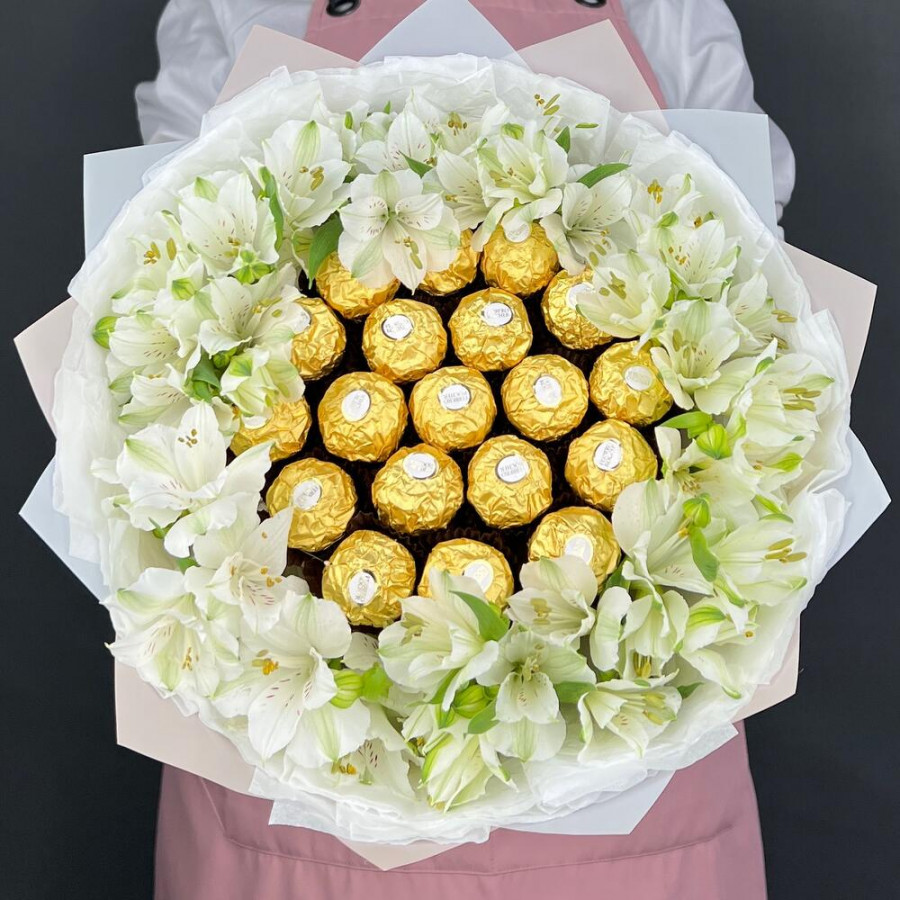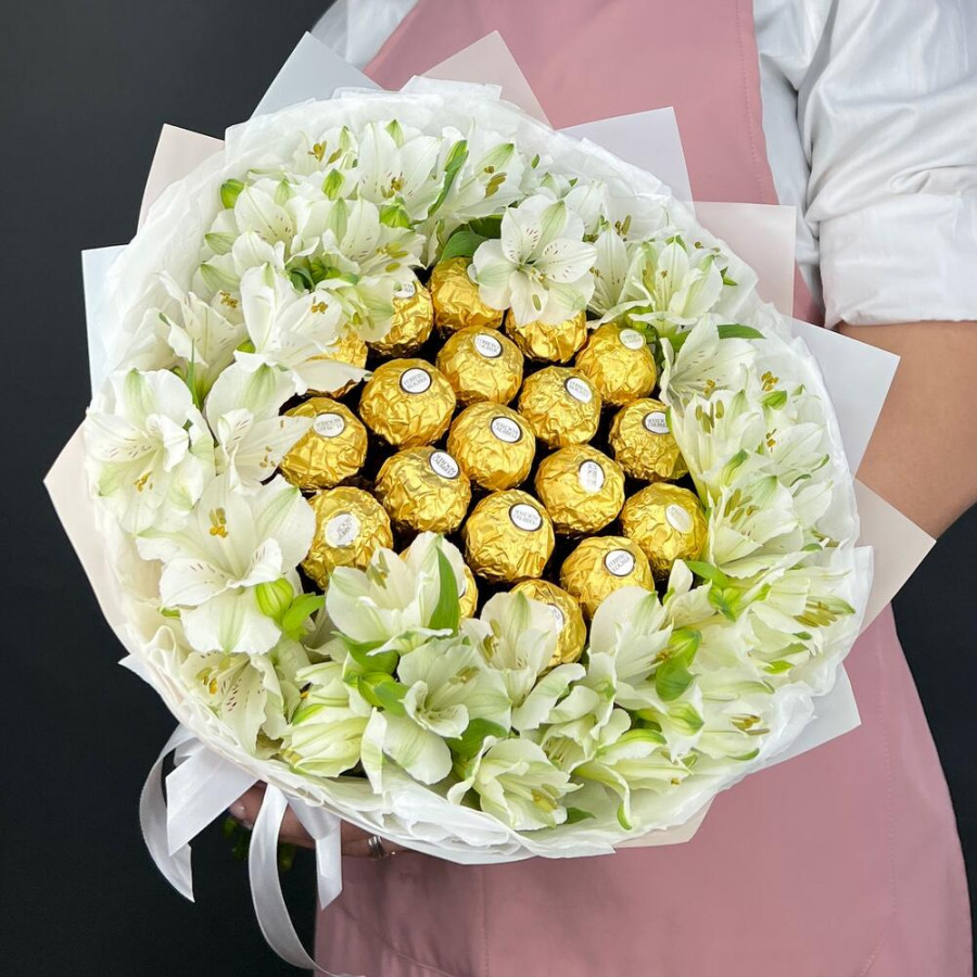 Букет из конфет Ferrero Rocher и и альстромерии в Ханты-Мансийске