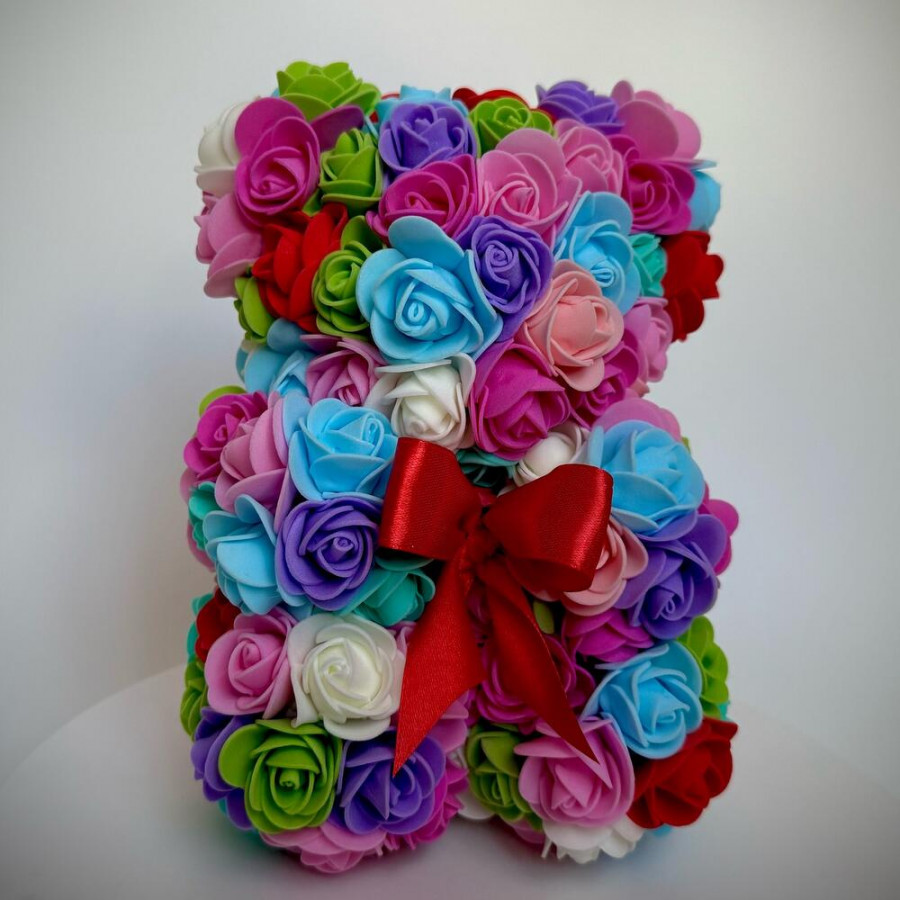 Мишка из роз «Радуга» в Ханты-Мансийске